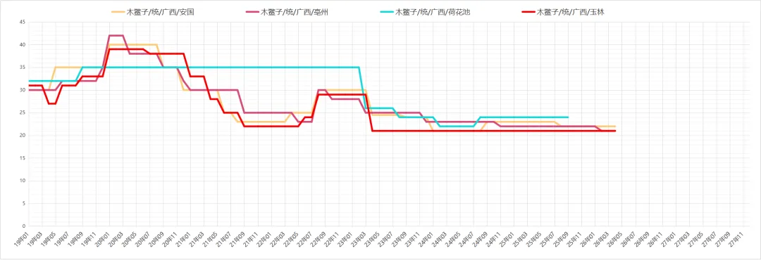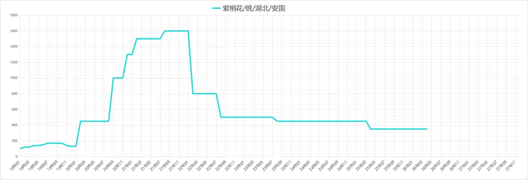 紫梢花行情与前期保持平稳,可供货源充足,近期走销一般,现市场紫霄花一般货报价在350元,好货报价在450元,继续关注后期货源走销情况。