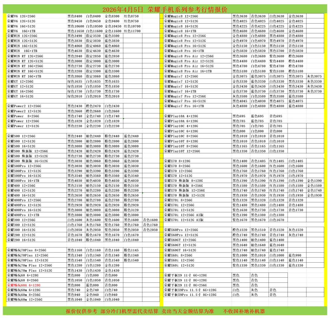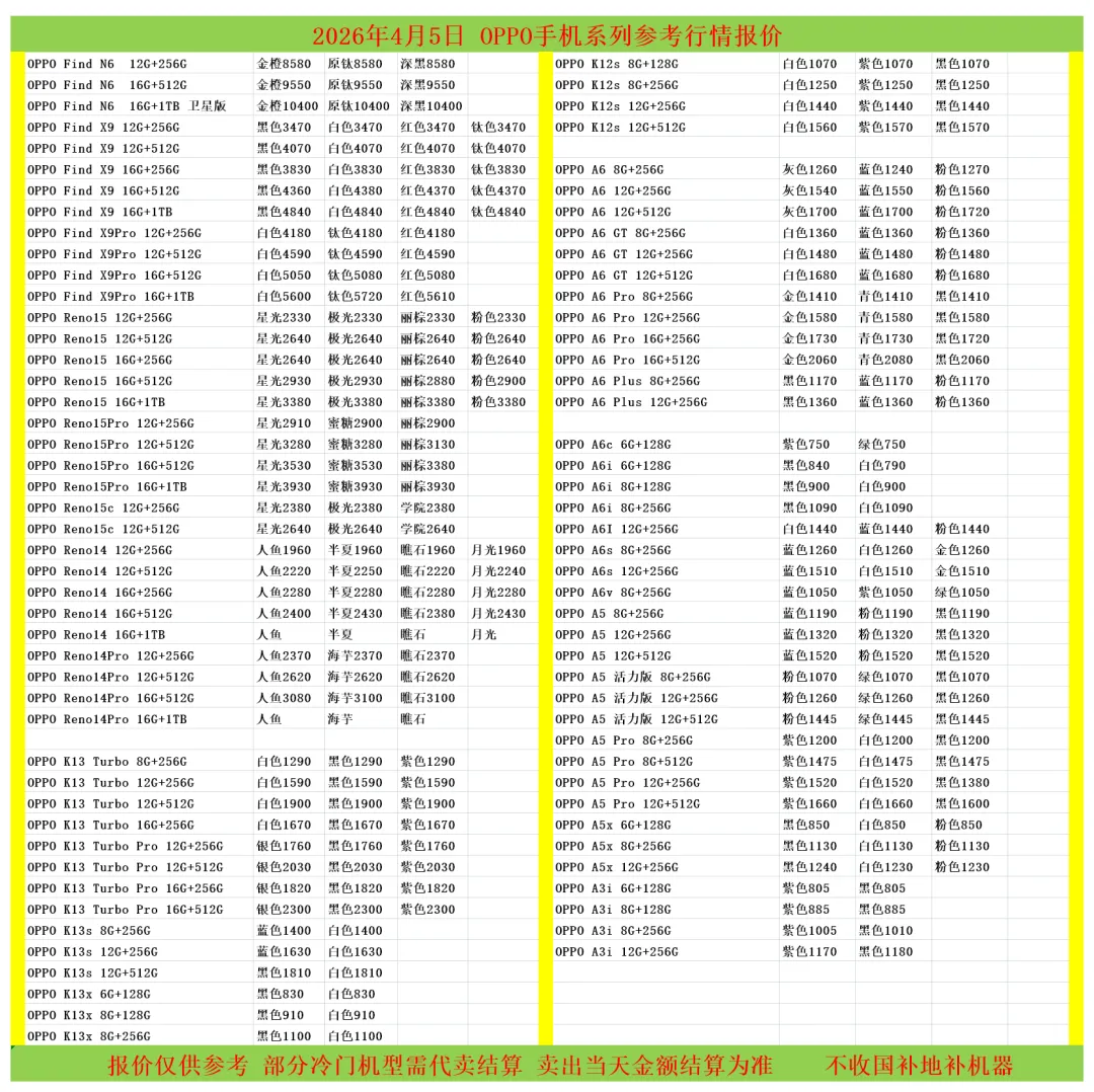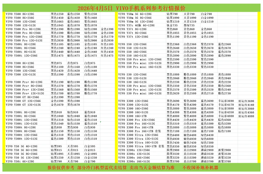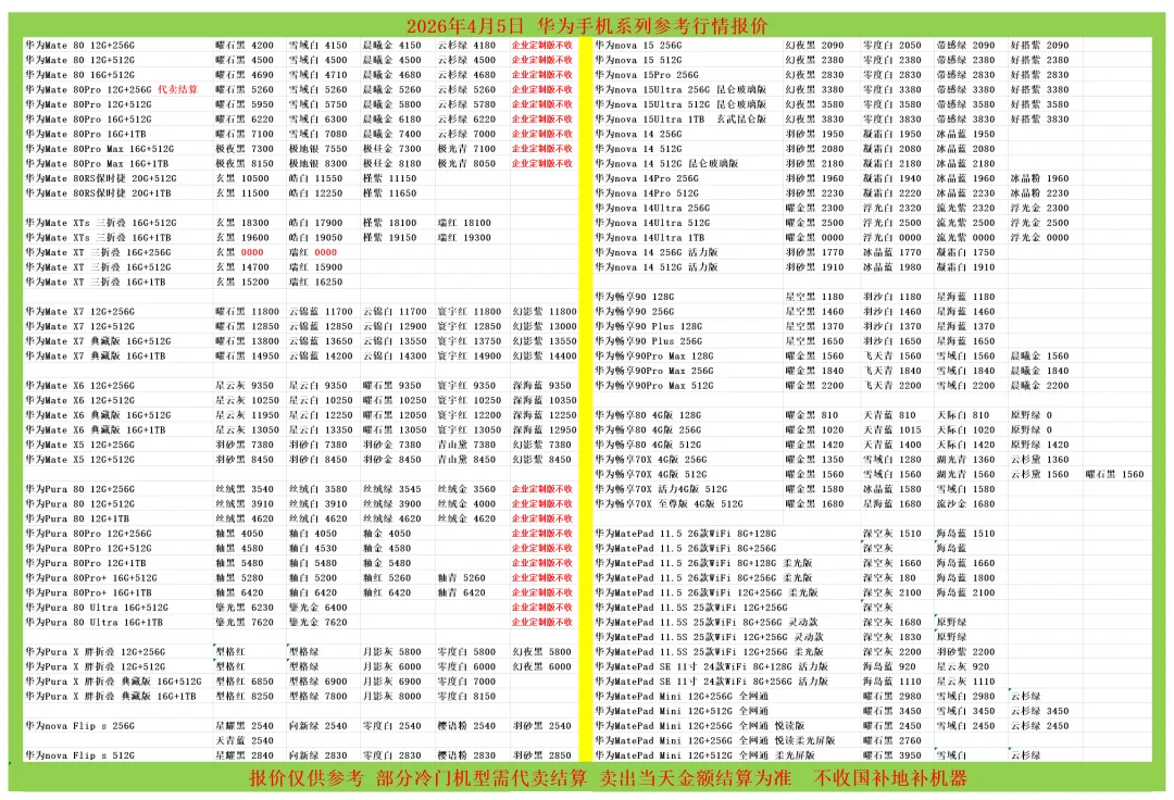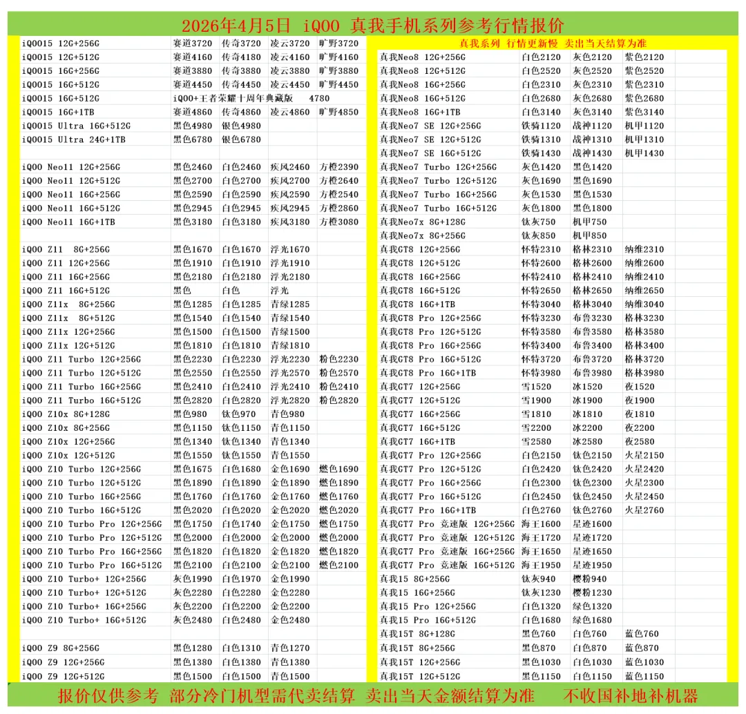 (1)二级市场为自由交易市场,价格实时波动,可能每个小时的卖价都不一样,此报价为华强北市场收货参考行情,实际结算价见公众号:鸟哥撸货数码结算价。