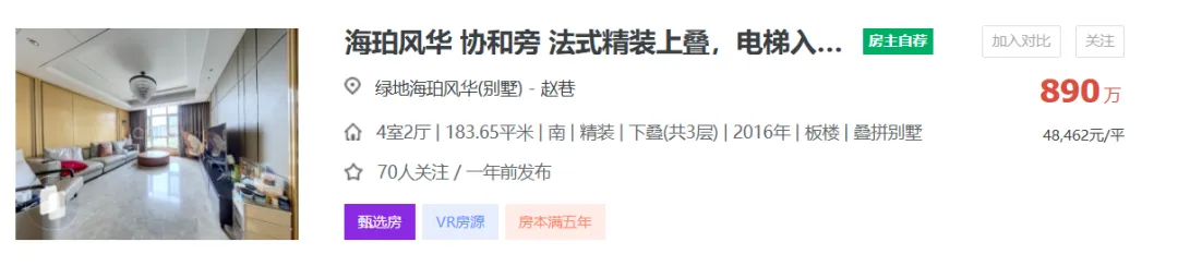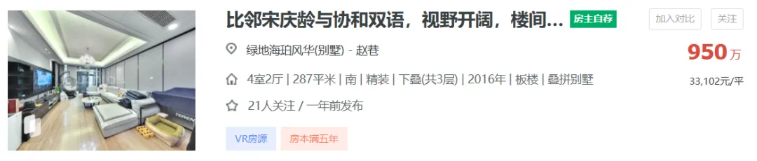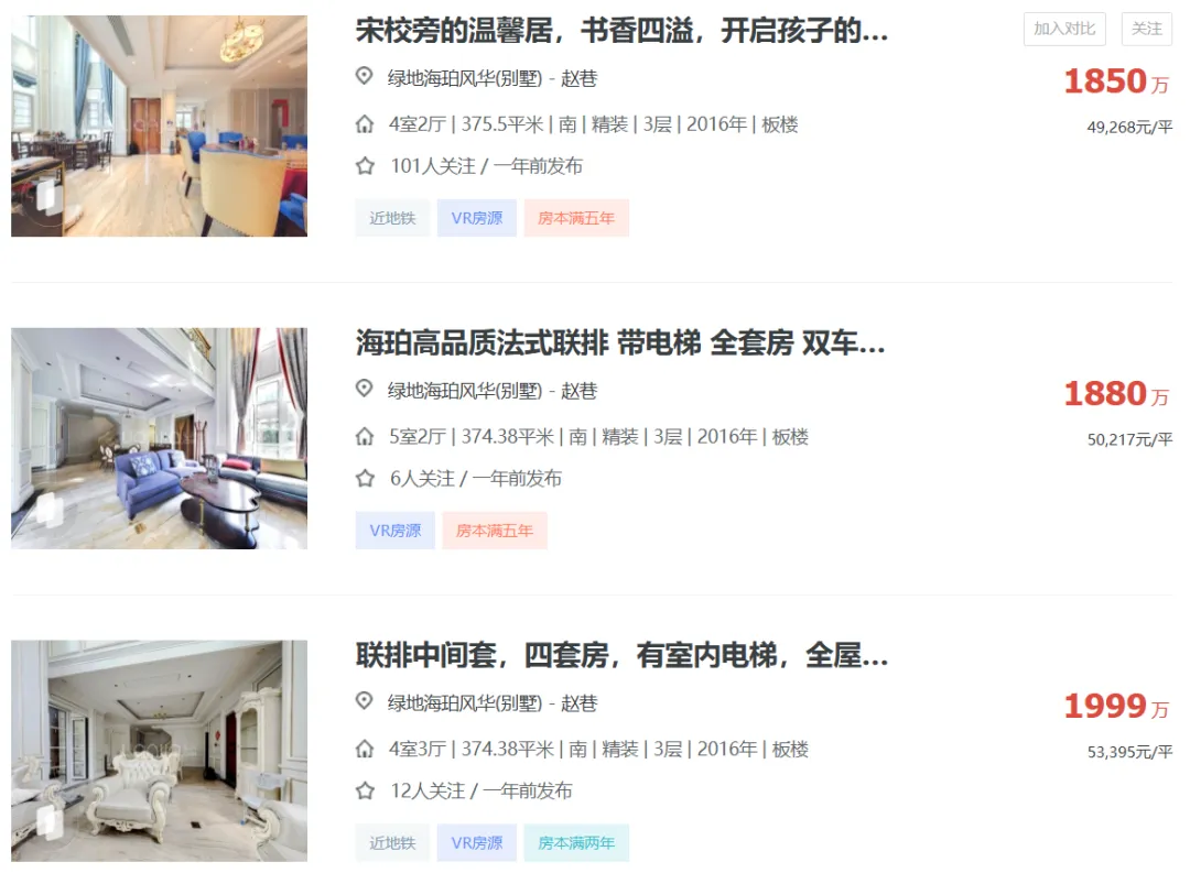 近1个月高端墅居行情平稳,绿地海珀系品牌+低密滨水属性加持,抗跌性极强