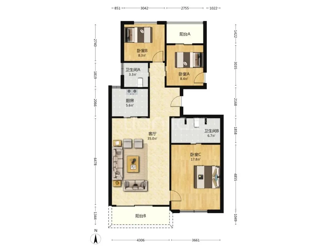 金臣颐墅154户型精装,中央空调地暖新风,4房设计,报价1890万,价格可谈