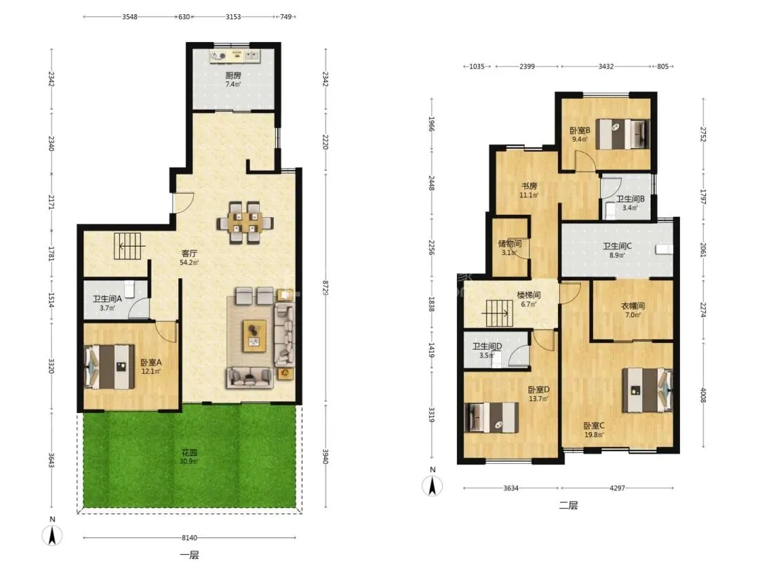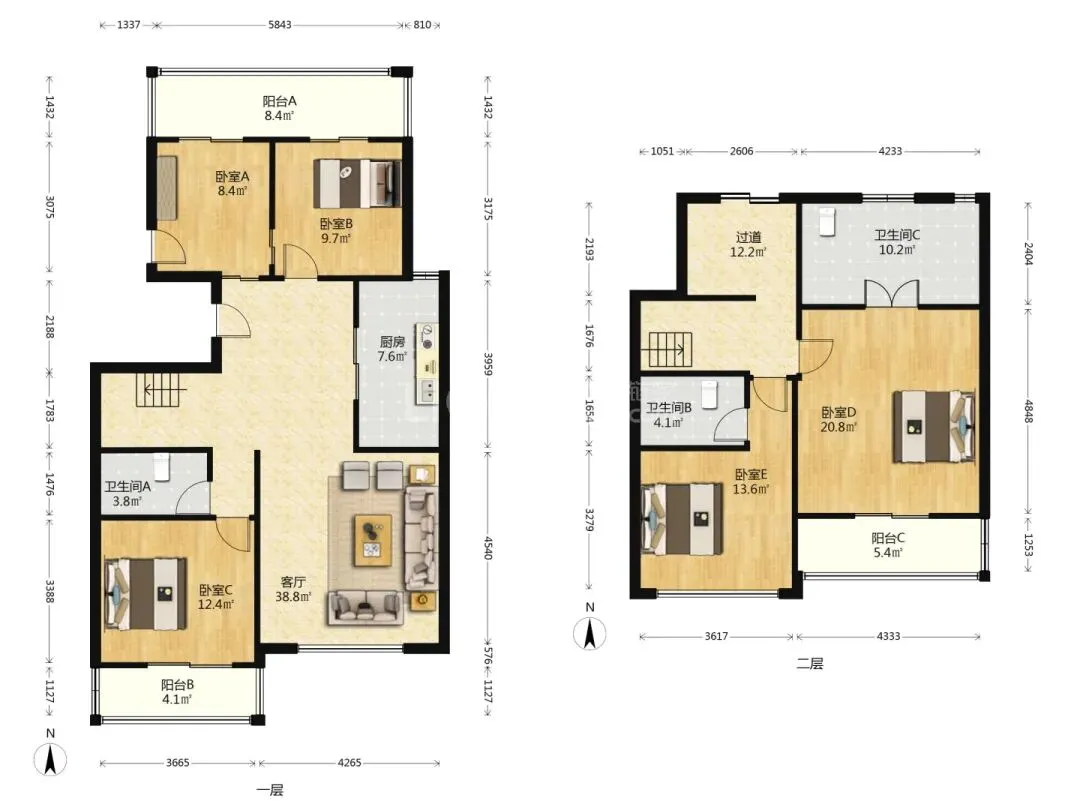下叠「约183㎡ 4房2厅」地上2层,地下1.5层