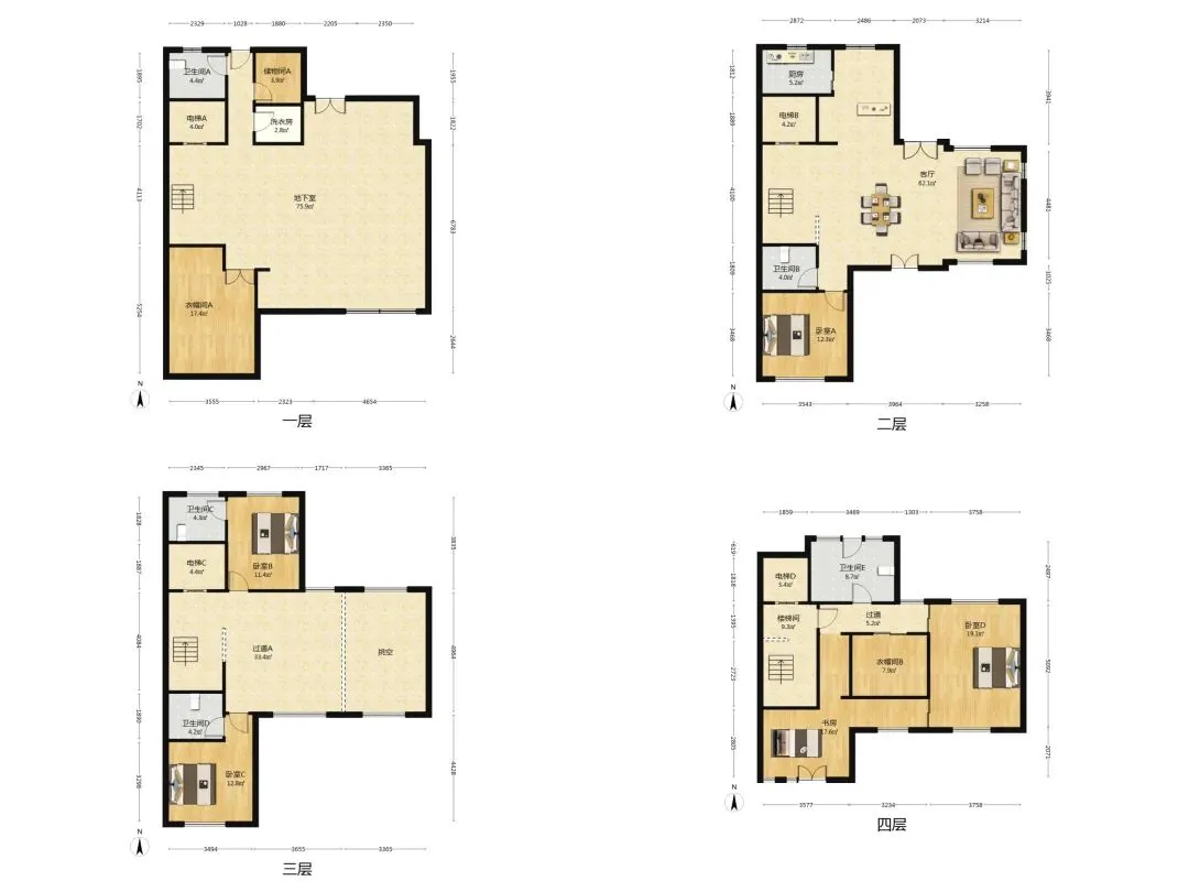 联排「约374㎡ 4+1房2厅」地上3层+地下1.5层