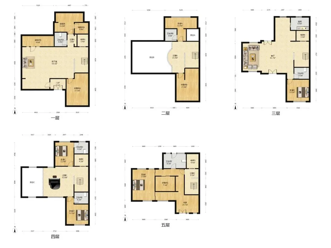 上叠「约265㎡ 5房2厅」地上2.5层+地下1层