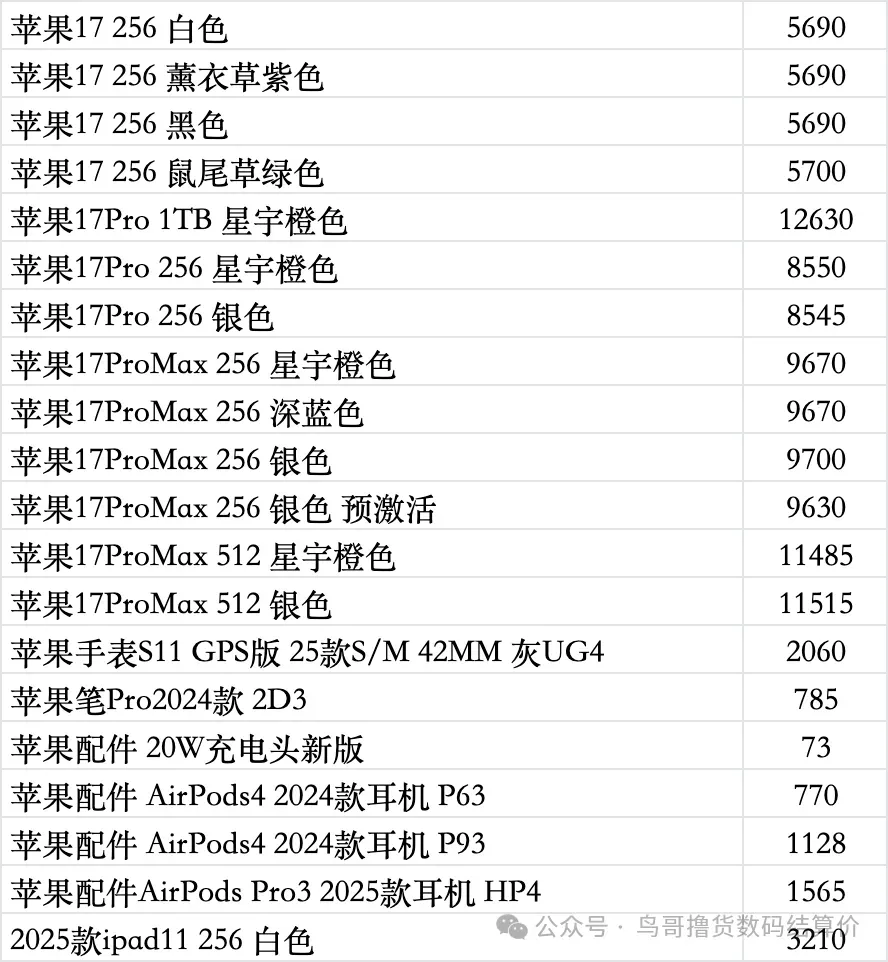 | 鸟哥收货iphone/ipad/手表系列结算价(前一天的结算价) |