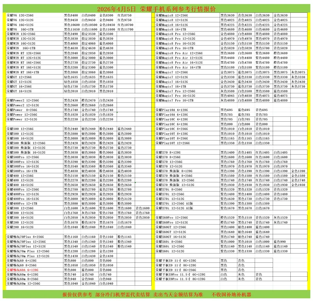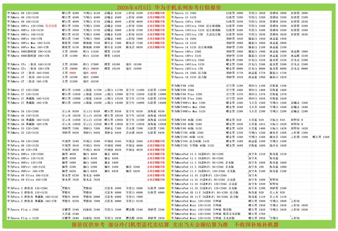 | 华为/荣耀/红米/小米参考报价 |