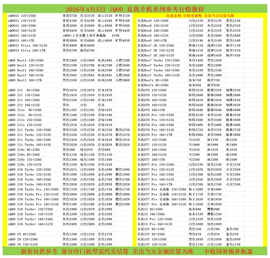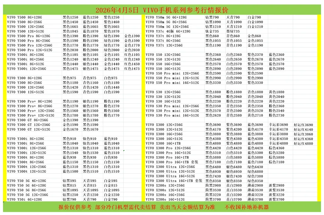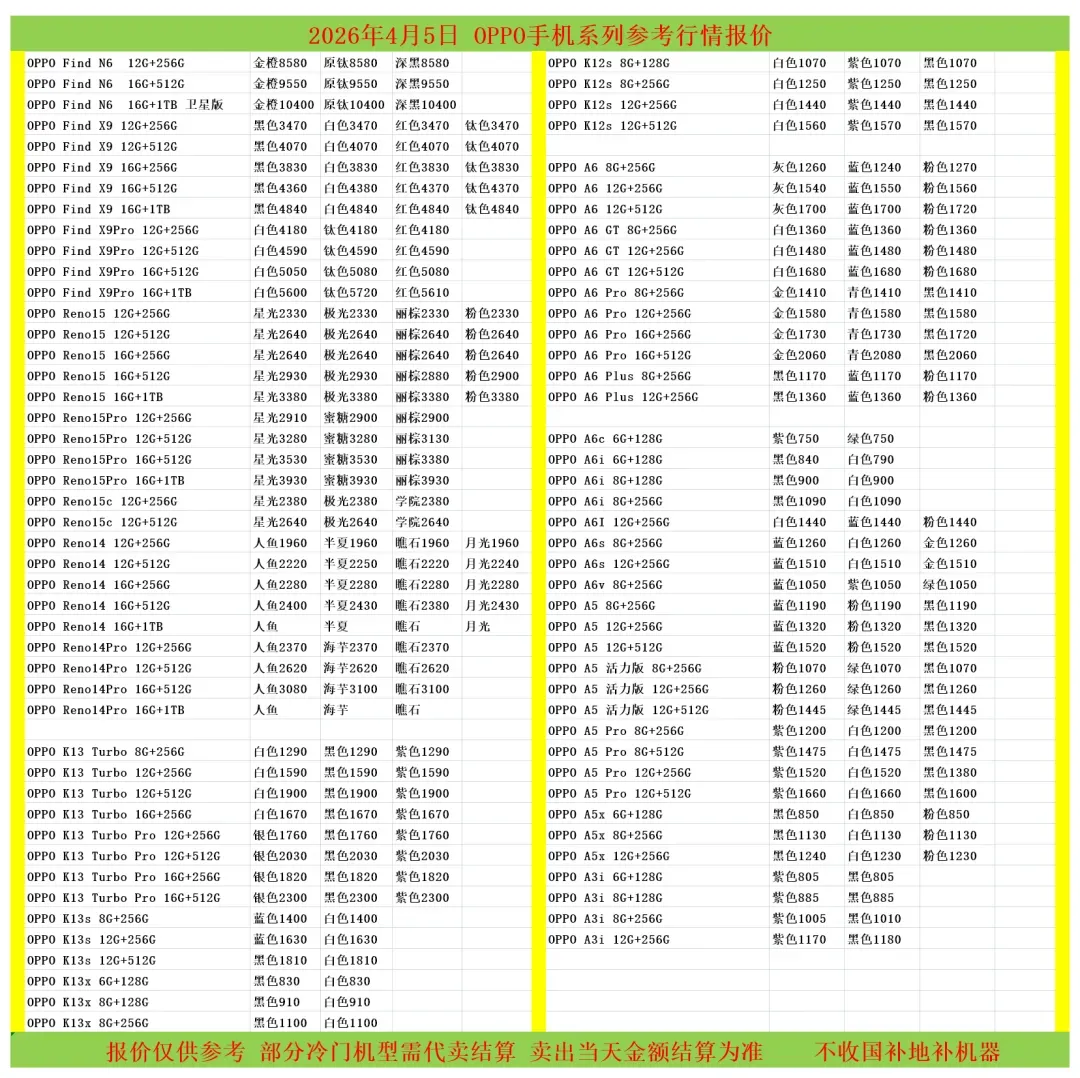 | 鸟哥收货华为/oppo/vivo系列结算价(前一天的结算价) |
