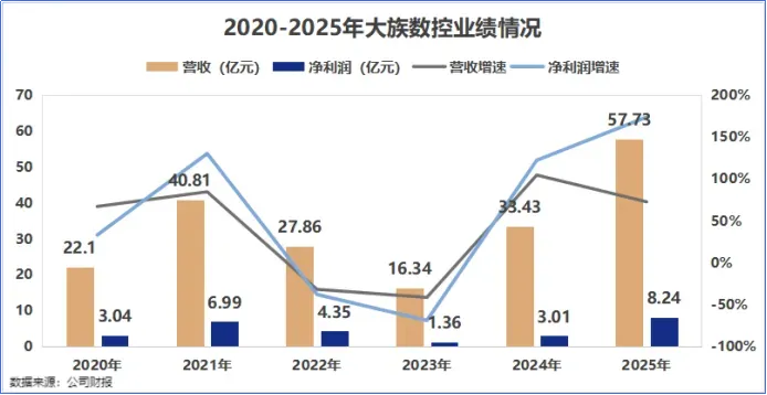 2025年,公司实现营收57.73亿元,同比增长72.68%;净利润8.24亿元,同比增长173.68%。