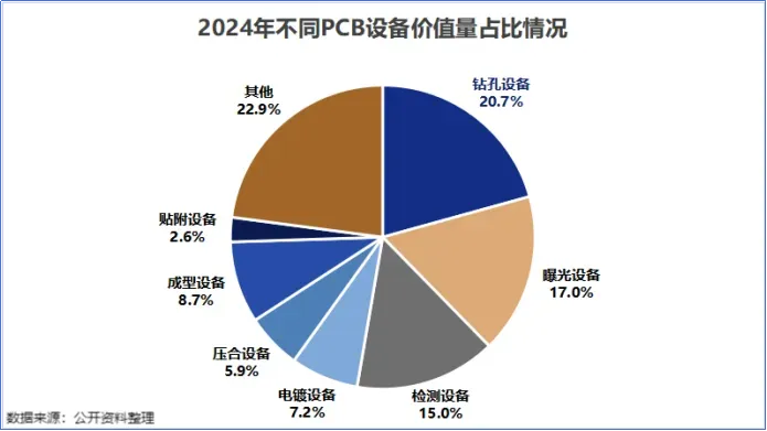 普通PCB产线中,钻孔设备价值量一般在20%以上,为最具价值量环节;在高端HDI产线中,钻孔设备的价值量占比进一步提升,可达30-40%。