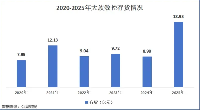 财报显示,2025年末,大族数控的存货达到了18.93亿元,同比增长110.77%。