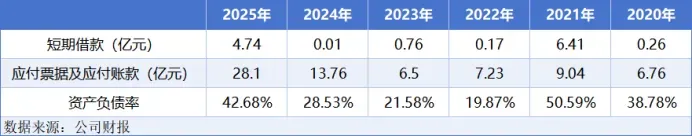 2025年,公司新增短期借款4.74亿元,应付票据及应付账款达到28.1亿元,同比增长104.22%。
