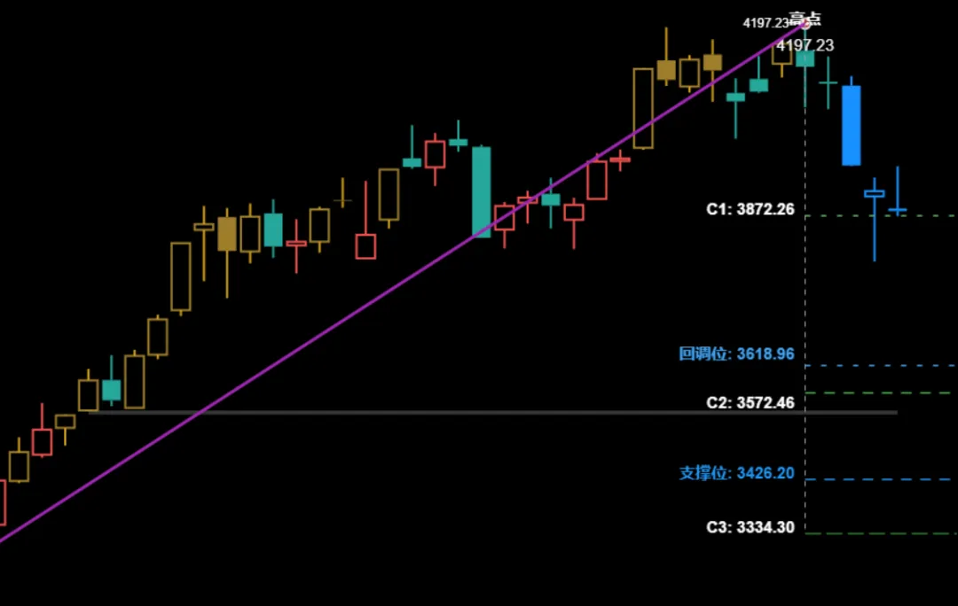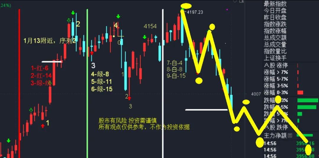 1.A股空间在高点4197点开始下跌,这一波跌到当前是3861这个重要支撑点位,一路震荡走到今天,下周市场将要迎来重要的拐点,耐心等待转折信号的到来。