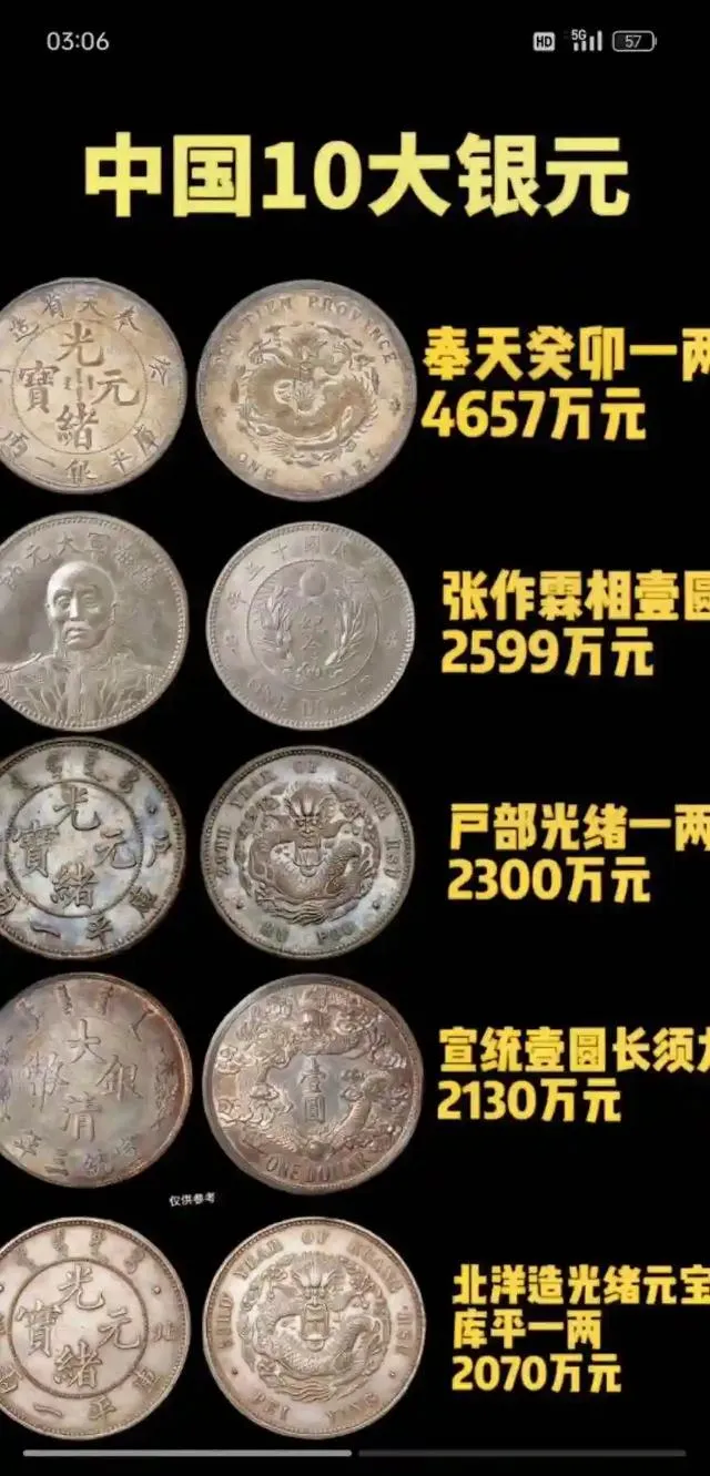 图上一圈的银币,被行家们叫“中国银元十强”,头牌奉天癸卯一两,出厂价能拍到四千多万,远非寻常家庭能摸到的主儿,但你别觉得这些东西真就只在拍卖会冷板凳上,高价背后,老行当的规矩和故事比这一串阿拉伯数字还显眼。爷爷就说过他小时候只在杂志上见过一次,印象里背面那条龙特别精,真货能摸到的没几个,喊价都只敢在馆子里咬着耳朵。说白了,这些顶级品种离咱普通人就像庙会上看一眼,真得到手难,比中彩票都扎心。