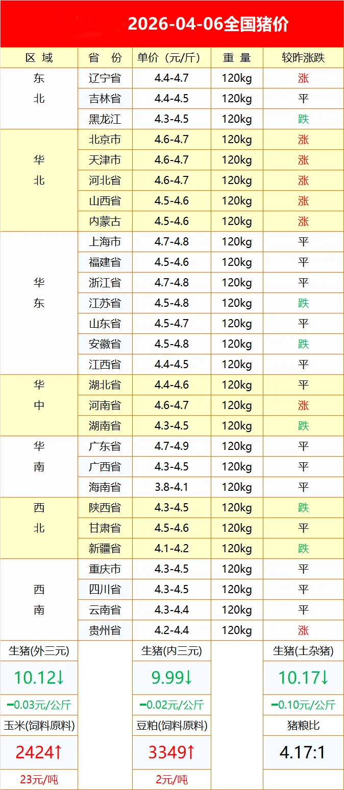 2026年4月6日星期一,鸡蛋行情描述↓ ↓ ↓