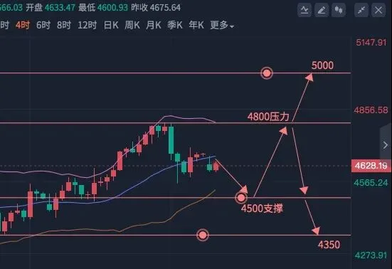 短周期来看,黄金就是区间来回震荡,上下轨道收紧,方向不明确,上方4800有强压力,下方4500有支撑,没突破这个区间前,就跟着震荡走,等跌破或涨破关键位置,再看单边行情。简单说,本周操作上杨金锐建议黄金就在4500-4800之间来回波动,没破位就可以在区间内把握机会,一旦破位就顺势操作。之前也提过,站稳4800上方有机会冲5000,跌破4500则可能下探4350。