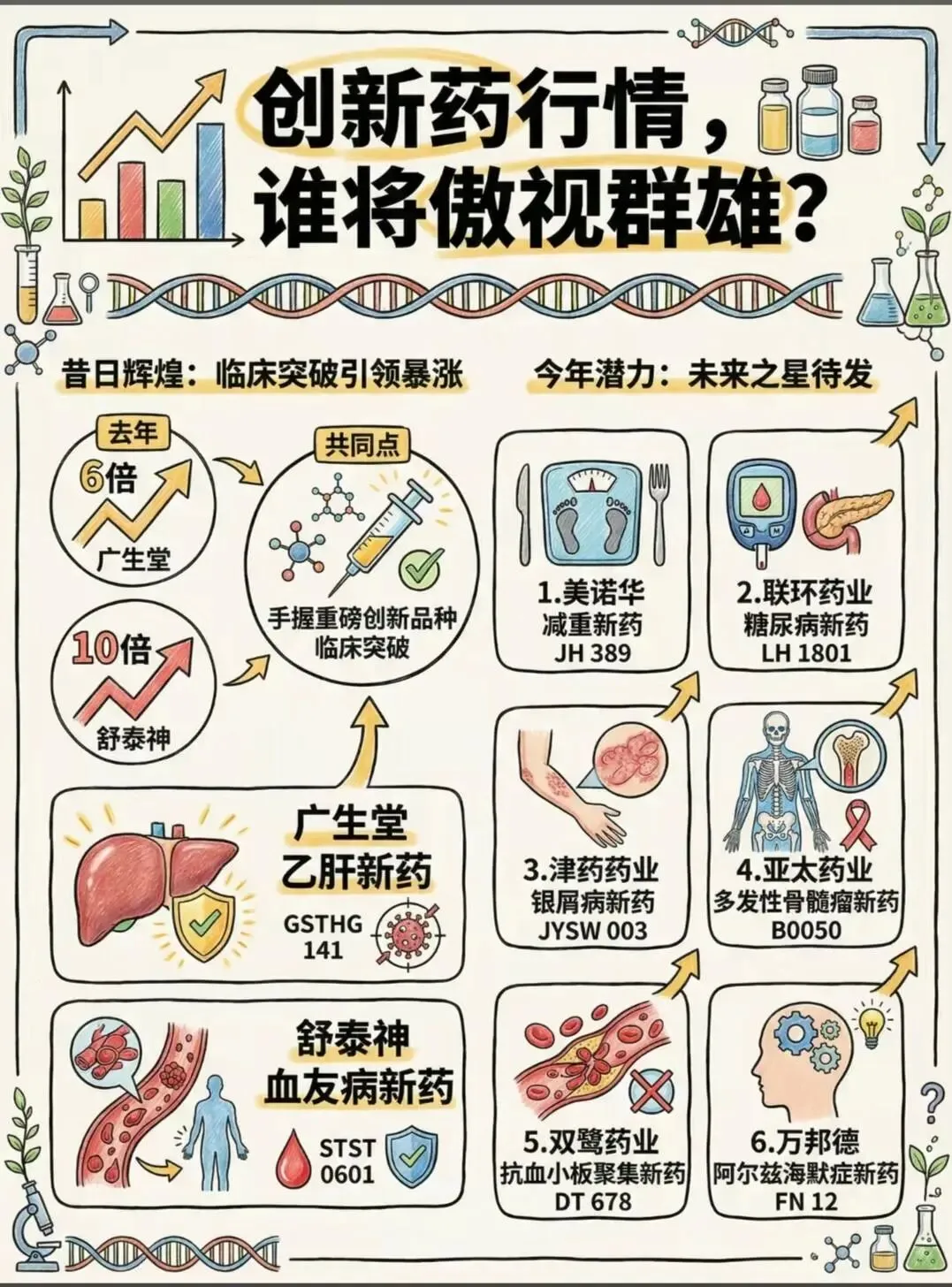 如果说广生堂、舒泰神是过去时,那下面这6家,就是今年最值得盯的「潜力股」,每个都有自己的王牌管线: