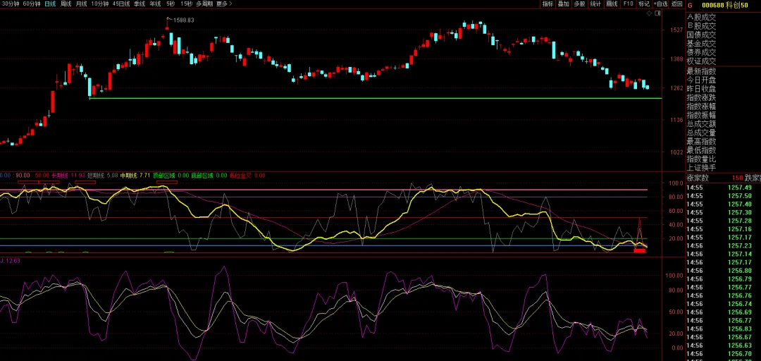 目前科创板指数,5分钟那牛指标位于底部,15分钟指标位于底部,60分钟指标位于底部,日线指标位于下行途中,短线指标属于调整态势,预计明天科创板继续调整。