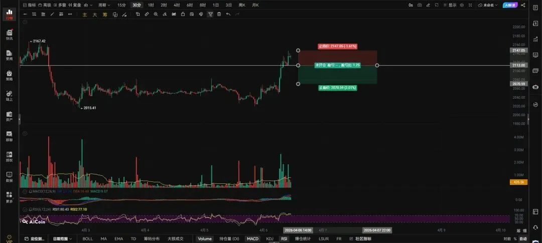 二饼带量突破2135右侧追多,收回止损。