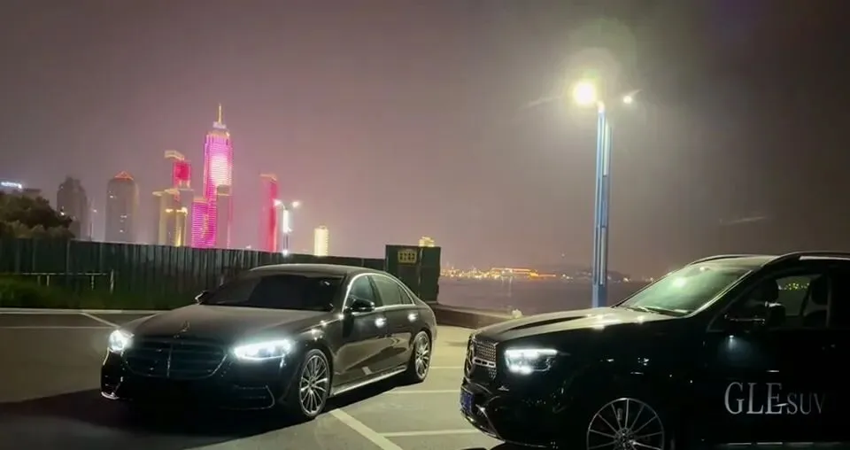 夜间停放的奔驰S级和GLE,引出GLE降价话题。