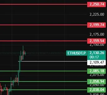 以太今天留意2110这个位置,只要回踩不破此位置那多头趋势还在,继续往上上方压力位留意2160-2200-2250这几个位置附近!
