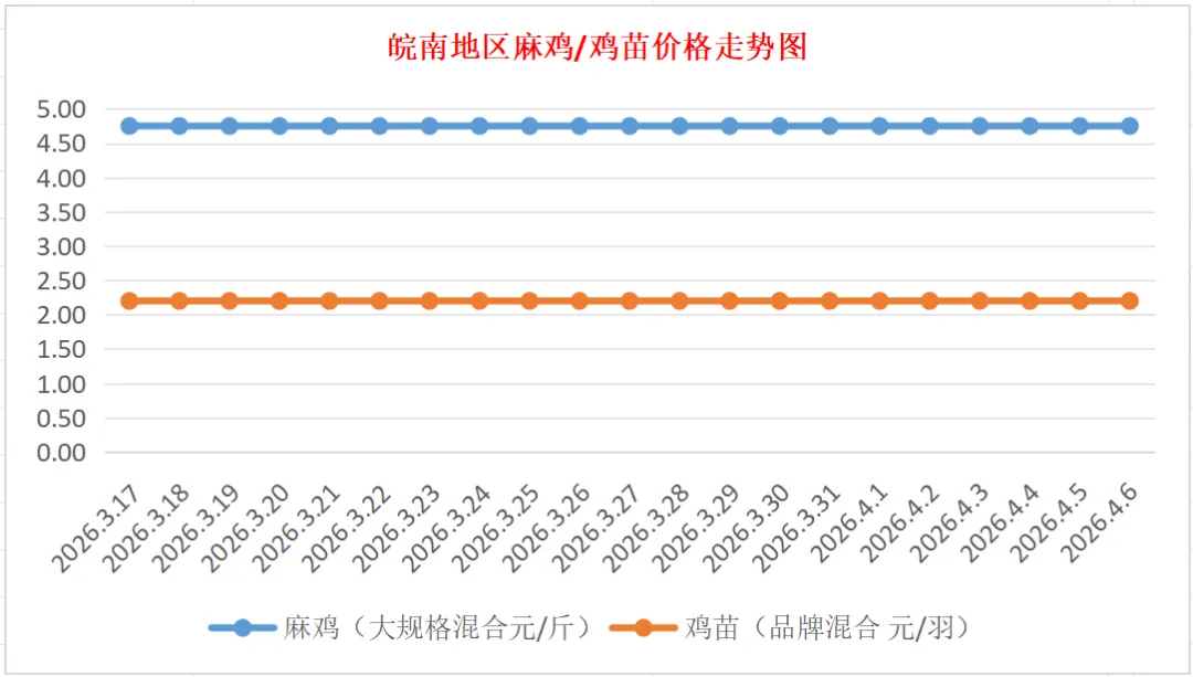 品牌新陂麻:价格稳定,到户价公苗4.50元/羽,稳。