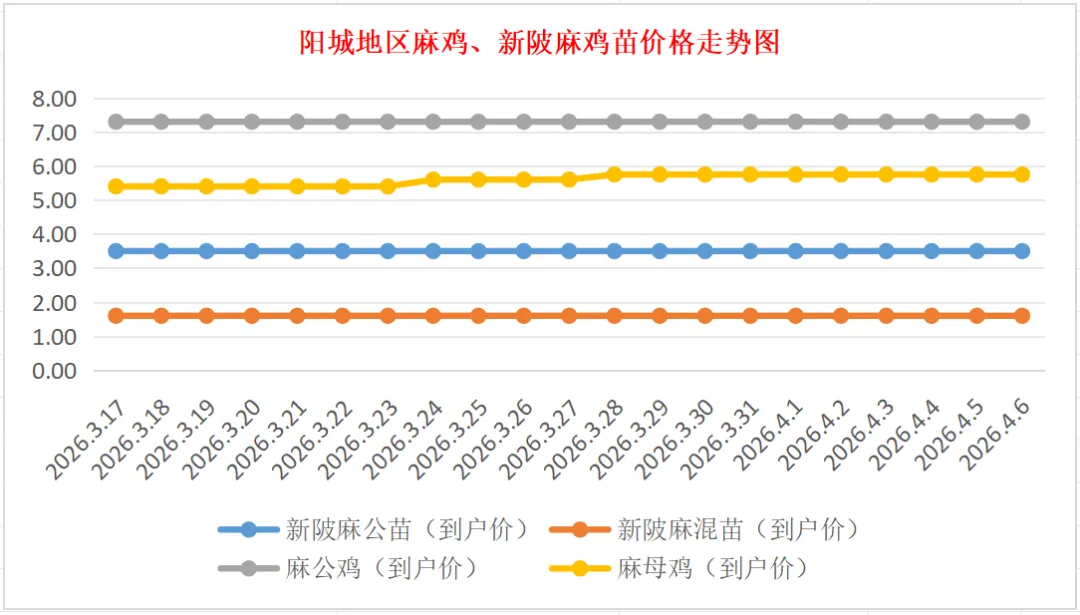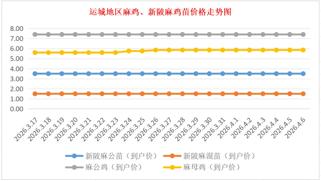 普通新陂麻:价格稳定,到户价公苗4.00元/羽,稳。