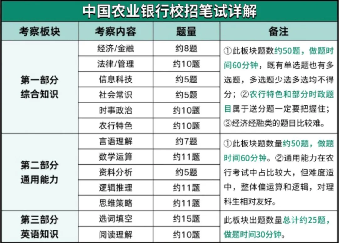 行政能力职业测试、专业知识、综合知识等。如数学运算(包含思维策略)、资料分析、言语理解、逻辑判断、金融、经济、会计、时政、银行常识等。