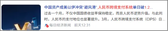3月,人民币跨境支付系统(CIPS)日均交易额达9205亿元,创过去12个月以来最高,并且在4月2日,单日交易额进一步升至1.22万亿元。