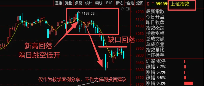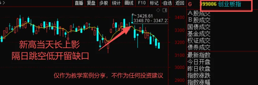 2.类似沪指,当时新高第二天,直接跳空低开,强转弱;