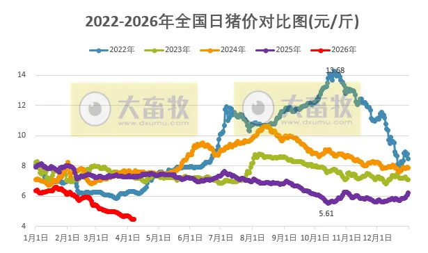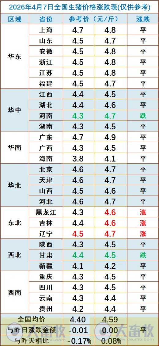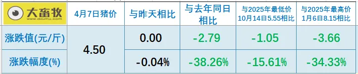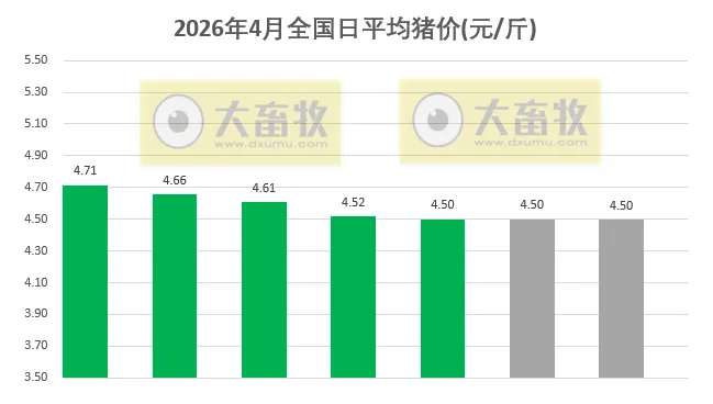 大畜牧小编根据我国27省的猪价数据,计算出2026年4月7日全国平均猪价为每斤4.50元,与昨天持平;