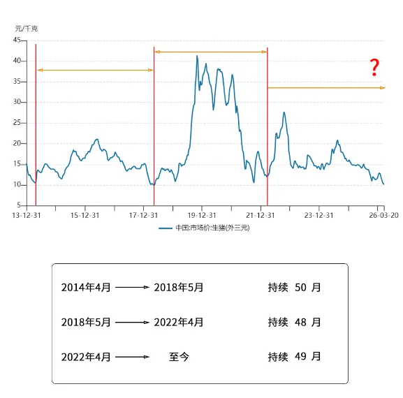 本轮周期自2022年末由高点回落后,到2026年4月,持续了49个月,达到了常年的周期时长。