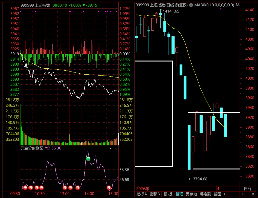节前最后一天又是冰点日,有近5只股票下跌,指数创最近一周的新低,有望直接奔3800点而去。 虽然节前指数大跌,但依然没有破坏趋势,还是箱体震荡模式。 3850是一个底,如果明天破了,那就会直奔3800。 指数自3-23日大跌以来,量能一天比一天少,量能未放大之前,主升行情不会出现,不要YY,现在是电风扇轮动行情。 云赛智联:看能否有再次下来低吸的机会,可以等一等,若有则关注,没有则放弃,不要强行上车。 燕京啤酒:跳空异动,看明天会否直接杀到平台来,若有则可以关注。 鸿博股份:低位异动,位置不高,C类票,可以关注下。 当前如果做轮动,医药轮动的概率会大一些,海王生物值得关注。 温馨提示:股市有风险,投资需谨慎。本文提及的股票仅做教学用。 需要抗衰、美颜、洁面、祛痘等护肤产品的朋友可以进小店逛逛