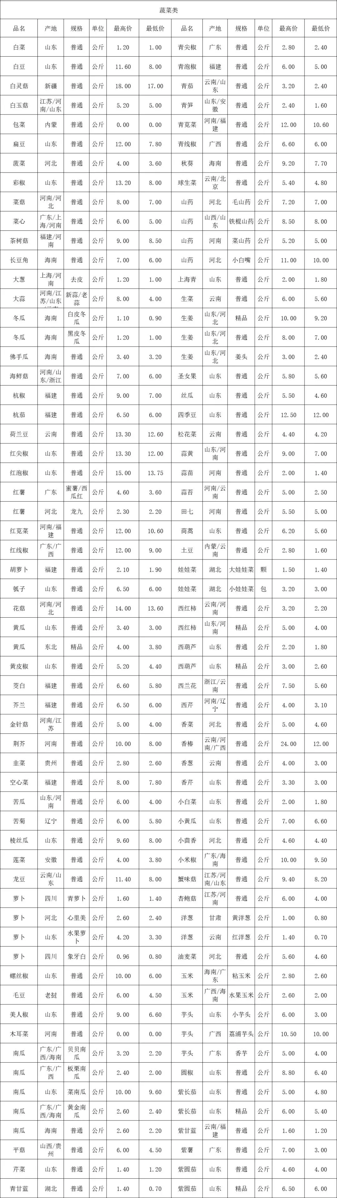 4月6日价格公示