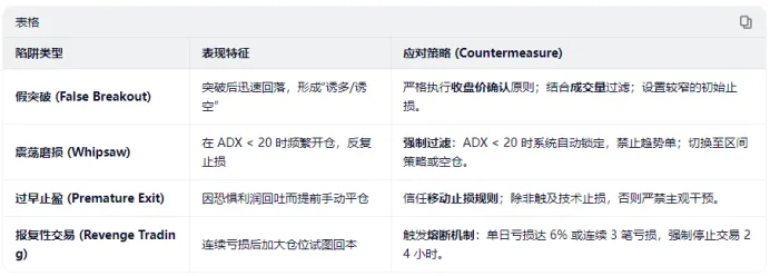 •ADX<20:市场噪音大,禁止开启趋势单。