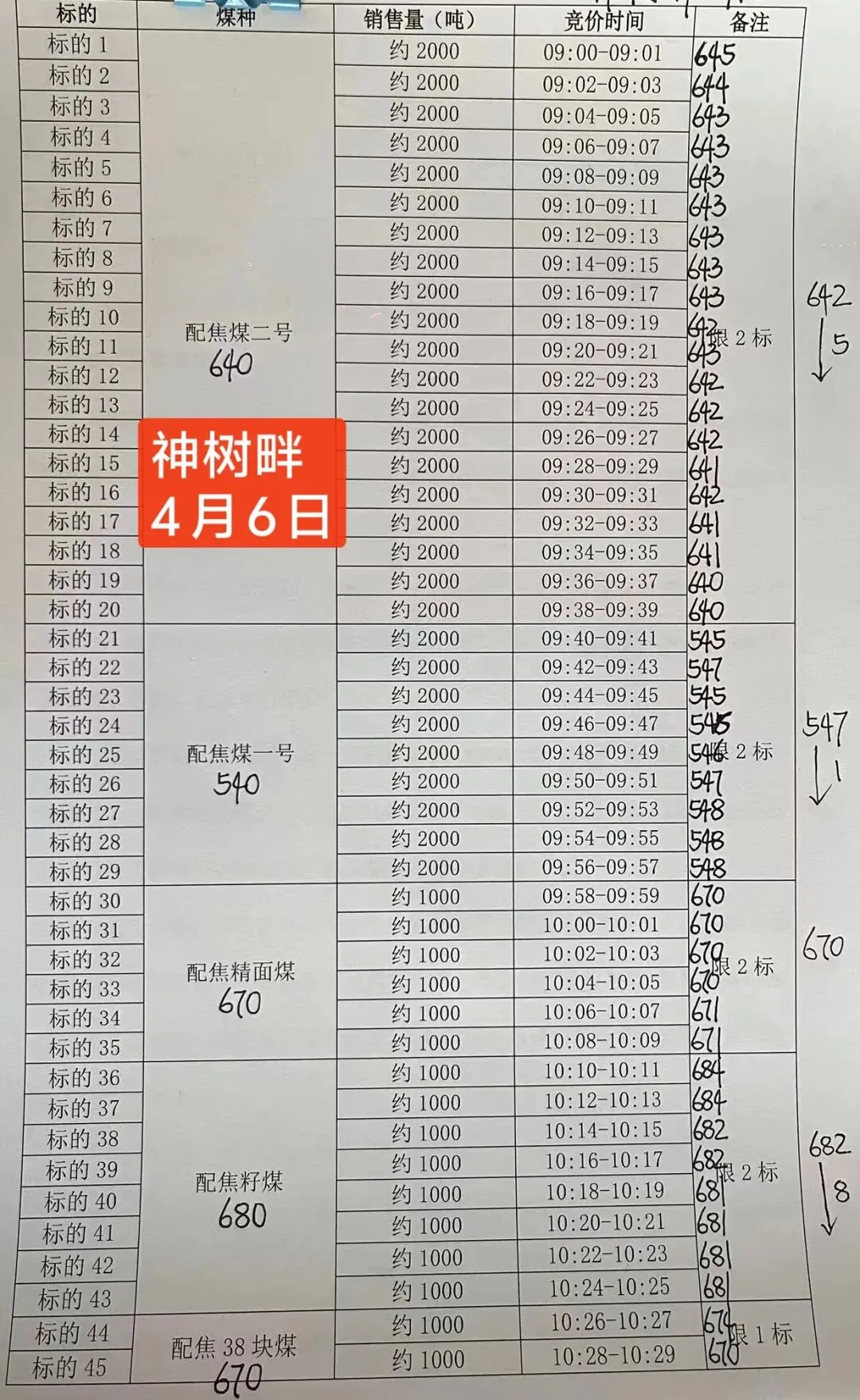 - 执行时间:4月6日 09:00(过磅为准)