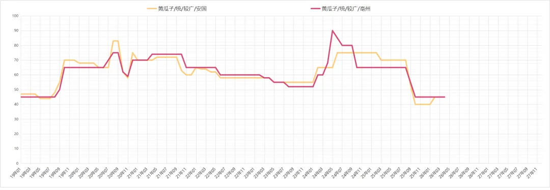 黄瓜籽价格上涨,随着货源的消化,市场库存不丰,持货商惜售心理进一步增强,价格稳步上涨,现药厂货45元;优质货要价55-60元。