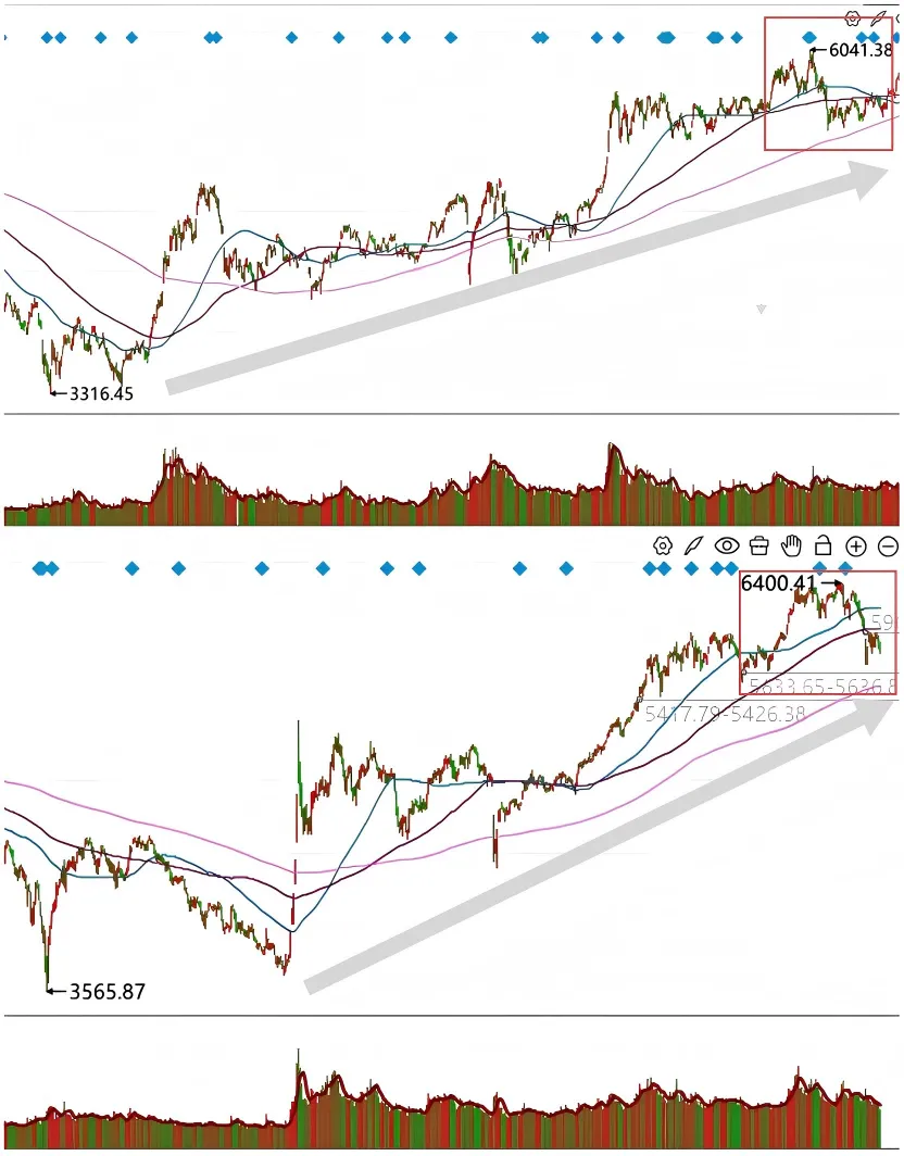在我看来,当前2026与2021的相似之处更多是指数层面的,年初加速上涨后的急转直下,配合着长期均线的多头排列。(见下图)