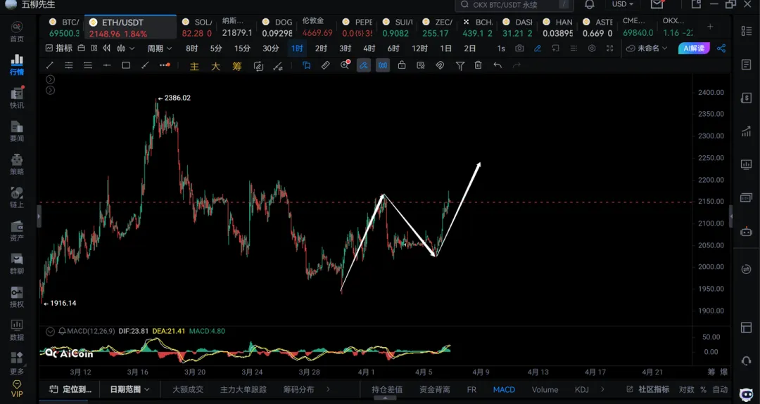 3)整体的4h级别的反弹正常是应该要破2386的,看看本周能否给到机会