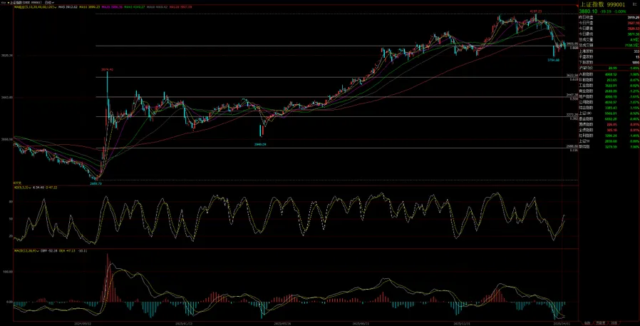 上证指数周线高开低走,再次失守3900整数关口;