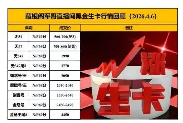 >获奖黑金卡2026年4月6日行情