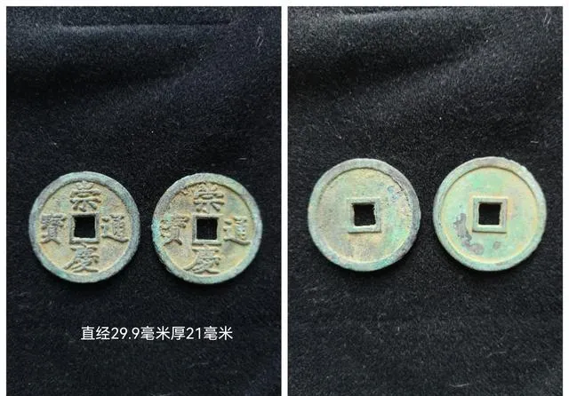 图上这对老铜钱叫崇庆通宝折二,直径快三厘米,谈不上多花里胡哨,可这品相一瞧就是年头货,绿锈里透着温润,字口清爽还带点厚重感,圈内人知道,这类东西就得看那股“糯劲儿”,手指头摸过去不会咯手,铜香味儿夹着陈气,家里有老人一摸就知道真还是假,今年古泉园地秋拍里,类似的崇庆通宝折二折腾出个大动静,张总一语不合直接加价,现场都“咦”了一声,207万落槌,拍完不少人心里都拔凉拔凉,后悔前两年叫老爷子随手送人了。