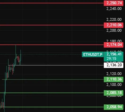 以太夜间留意2136这个位置,只要回踩不破此位置那多头趋势还在,继续上行上方压力位留意2175-2110-2250这几个位置附近!