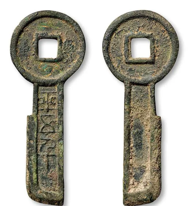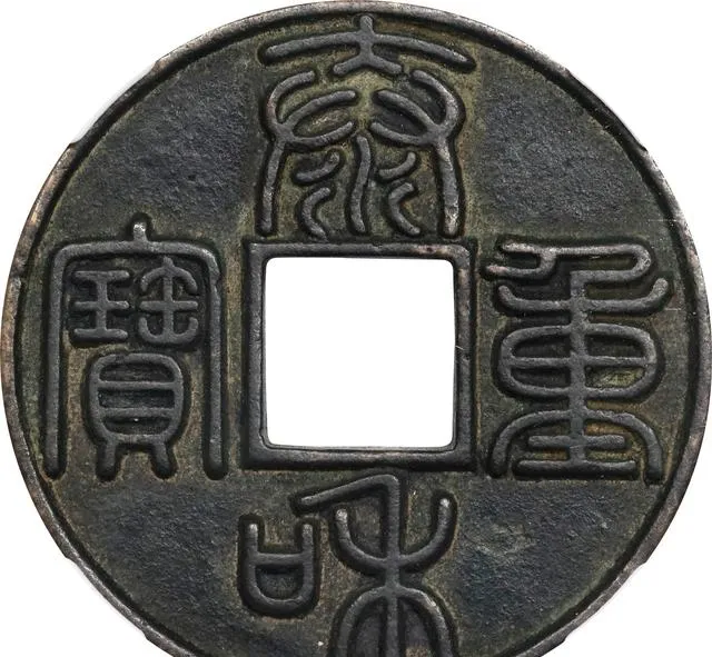 图上这个胖头长身的铜钱叫一刀平五千,老钱友动不动就提“金错刀”,其实说的就是它,圆头方孔底下溜着一截厚实刀身,两面刻着字,一面铜绿厚,剑气还在,重量足,摸起来冰冰的,手指一挨就蹭一层灰青,这枚可不是寻常货,1月拍卖最高冲到15600美金,另有分数稍低的也能卖到12000美金,只差了5分,价格就差三千六,爷爷说这东西全靠品相,边角磕不到,金丝纹路都清楚才叫板,如今能找到八九成新的几乎不多见,稀缺就是王道,这价在圈里也算顶级水平了。