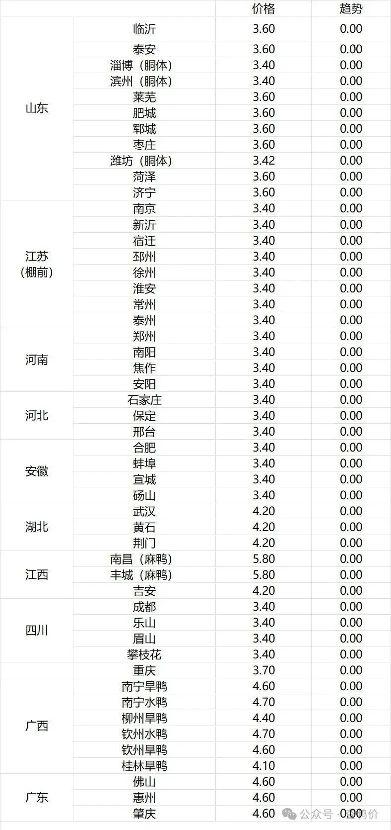 微评:鸭苗报价稳定。(注:南方只报当天价格)排苗节奏放缓,规模场补栏趋于理性。根据产品、养殖成本及鸭苗现状分析,预计近期鸭苗价格呈稳定为主趋势。种蛋报价稳定。温馨提示:该价格为主流厂家报价,实际销售价格以成交价格为准,价格仅供参考。