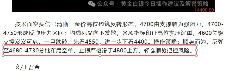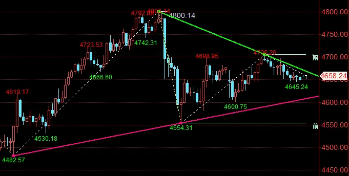 操作策略:顺势而为,反弹至4680—4700区间分批布局空单,止损严格设置在4750上方,轻仓顺势操作,严控风险。