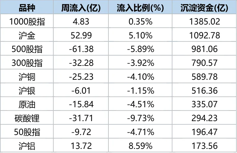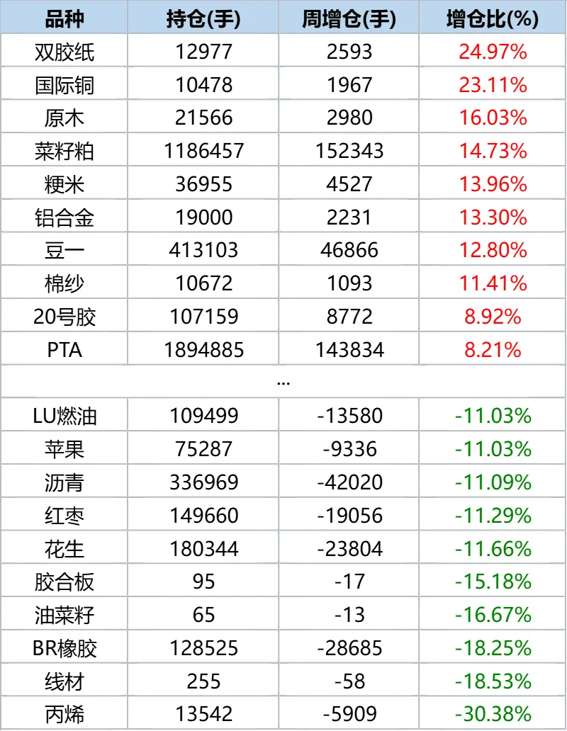 每周统计,包括沉淀资金、涨幅、增仓比、期现比、价格水位五个排名表,根据周五的最新数据做统计;每周一发布,遇节假日顺延。