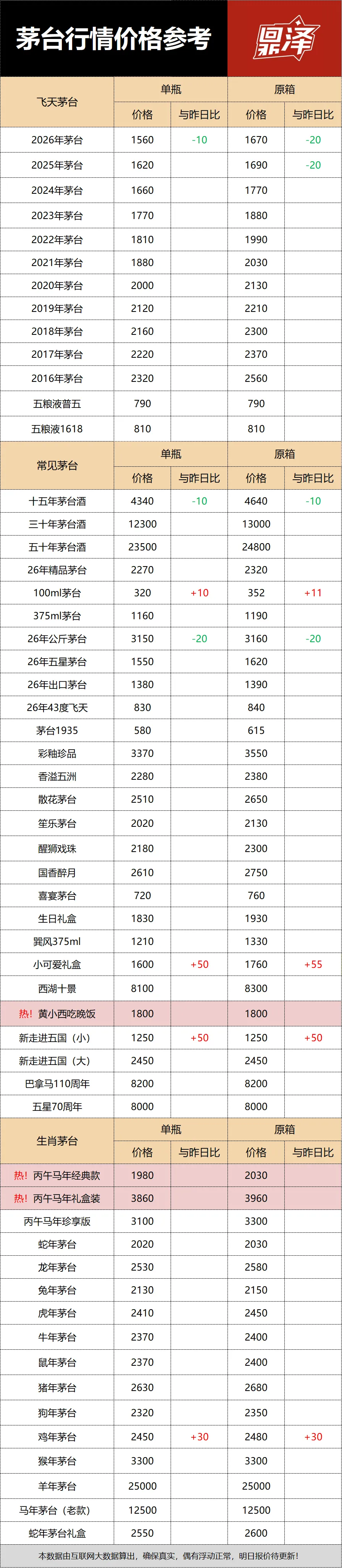 行情价:本公众号发布的价格是行情价格,是全国酒商调该品类茅台的价格,是零售价和回收价的基准价格。