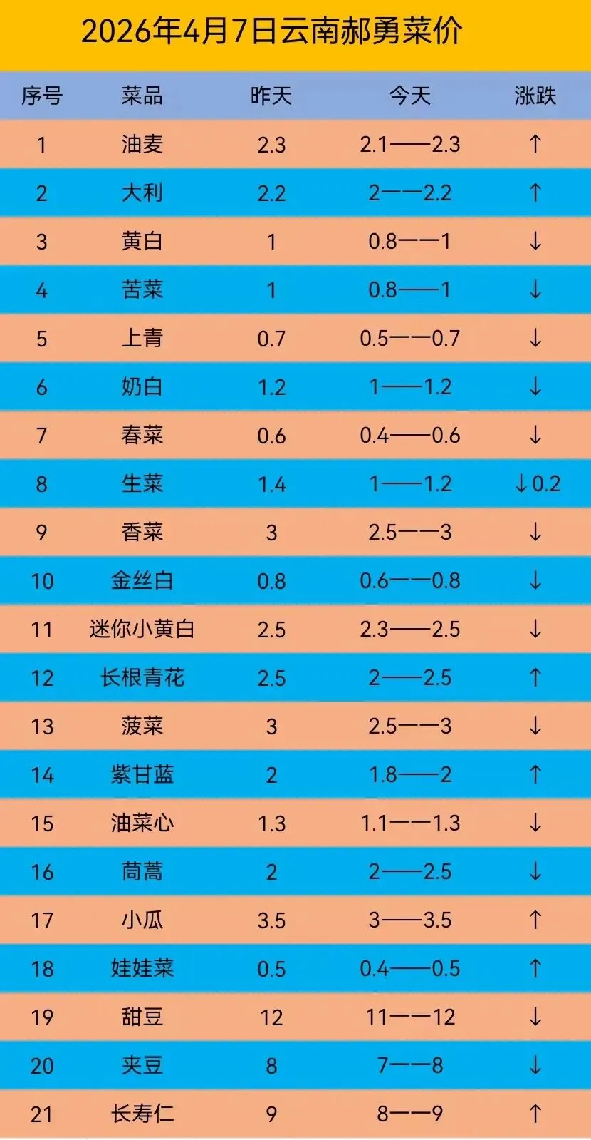 一、油麦菜:今天价格持平。