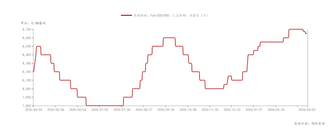 近期原料市场供应偏紧、价格坚挺,成为不锈钢价格的核心支撑。印尼镍矿出口政策收紧,据Mysteel调研,3月印尼镍铁产量受到镍矿供应紧张影响仍有降产,国内镍铁供应增量有限,镍铁价格稳中偏强,钢厂采购成本承压。铬铁市场迎来涨价行情,4月钢厂钢招价格环比上调,市场看涨情绪浓厚,铬铁现货供应偏紧,价格偏强上行。此外,废不锈钢市场流通量偏紧,价格也保持稳中有升态势。