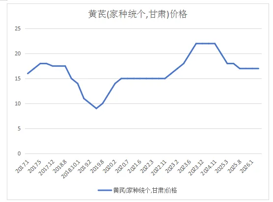 图:黄芪2017-2026年市场价格走势图