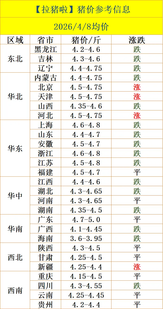 当前位置:首页>行情>【拉猪啦】4.8-猪价行情与买卖猪信息!(跌多涨少!以跌为主!)